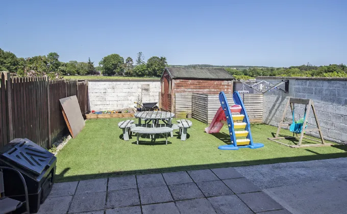 This garden is essentially maintence free and has an astro turf lawn. The property is not overlooked at the rear with agricultural land behind.