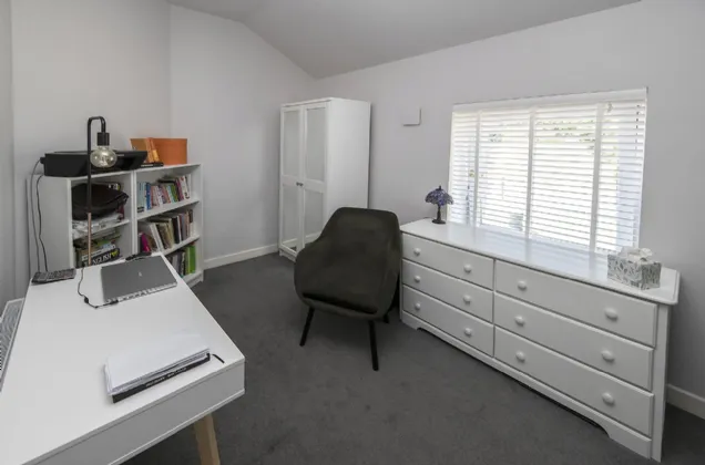 Bedroom Two 2.5m x 4.55m Carpet floor, painted walls, window to the front, blinds, centre light.