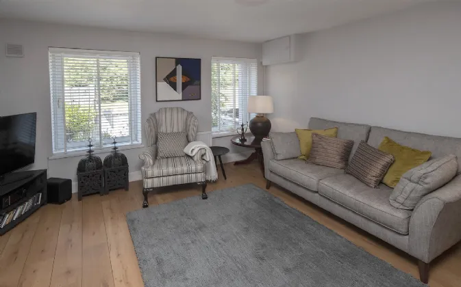 Living Room 5.13m x 4.22m High quality semi solid timber floor, two windows to the front, centre light, new Henly multi functional stove and flu lining,T.V point.