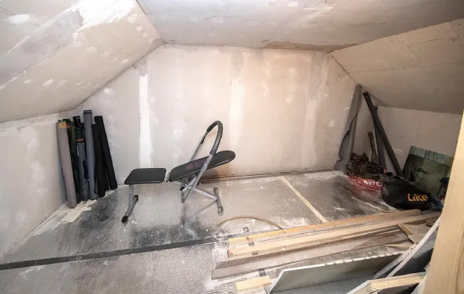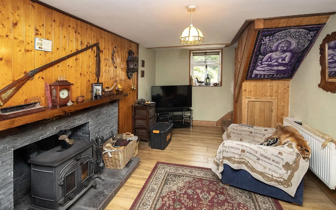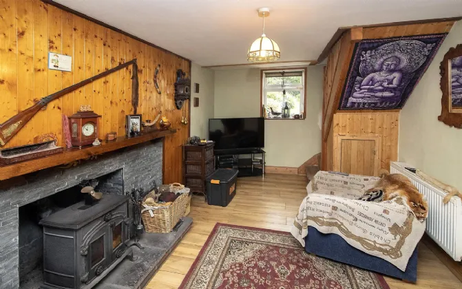 The living room is to the front of the house and is a cosy room with a window to the front and rear and a fitted stove. A stairs leads from the living room to an additional attic room.