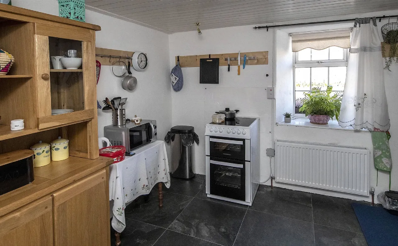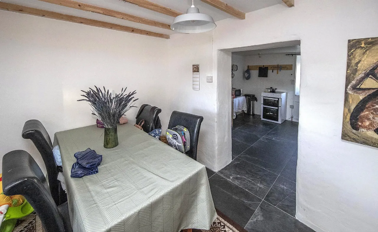 Tastefully and thoughtfully refurbished in recent years, the house boasts a pristine interior with an open plan layout on the ground floor. On entering through the front door one is greeted by an impressive lounge that has an open fireplace and beautiful exposed stone. The kitchen is to the front and opens to the spacious dining area at the rear.