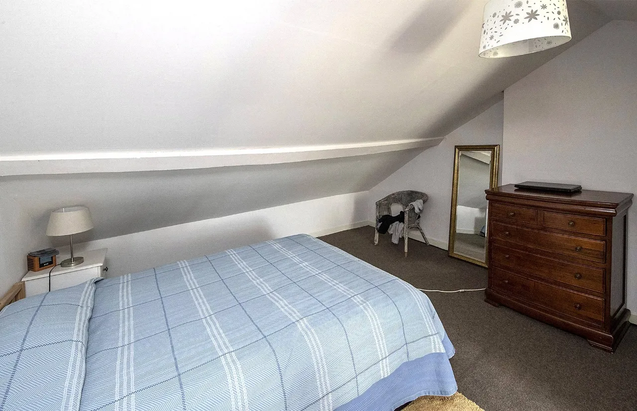 Upstairs, there are 2 ample size bedrooms and some storage off the landing. The master bedroom has an additional storage area.