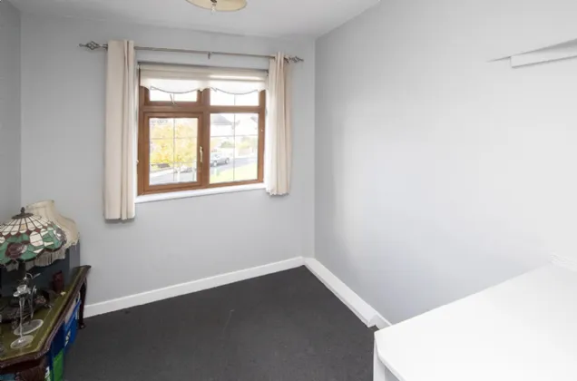 Bedroom Three 2.41m x 2.7m Carpet floor, painted walls, window to the front with curtains, centre light.