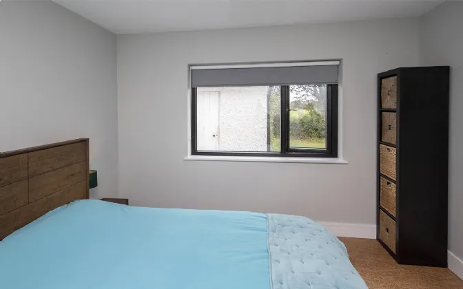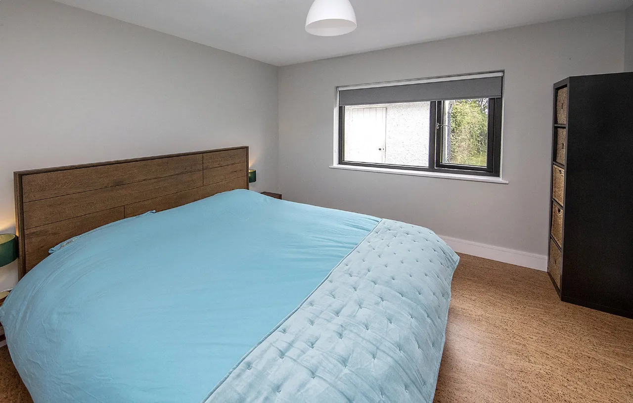 Bedroom Two 3.63m x 3.43m HQ cork floor, painted walls, window to the rear with blinds, centre light.