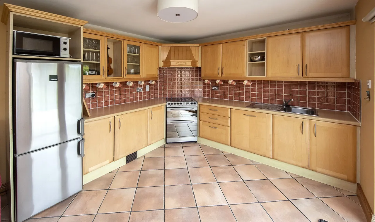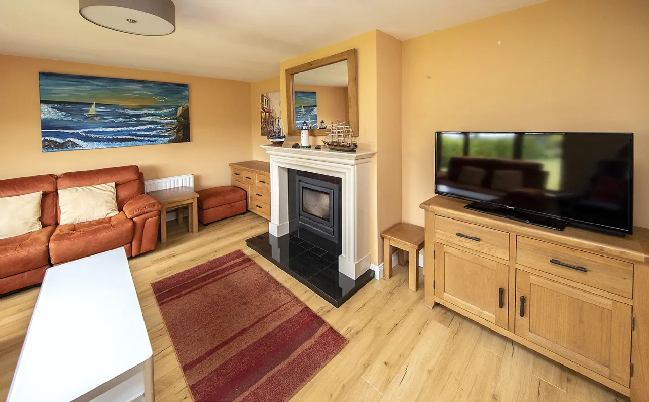 Inside, the property is in excellent condition. The front living room looks out on the garden and is a cosy room with a fitted stove. The kitchen/dining is to the rear of the property and is most spacious with plenty of glass allowing an influx of light. A door opens to the rear south facing patio which is perfect for relaxing and entertaining guests in the fine weather.