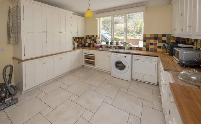 Utility Room 4.2m x 3.73m Tiled floor, painted and tiled walls, window to the rear, door to the car port, centre light, extensive fitted units. plumbed for washing machine and dryer.