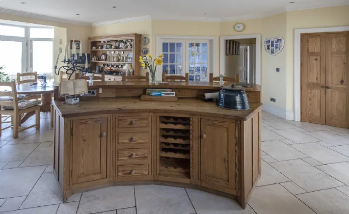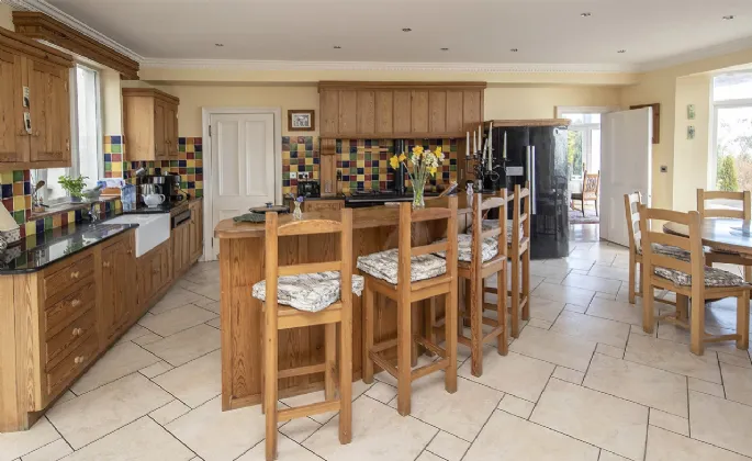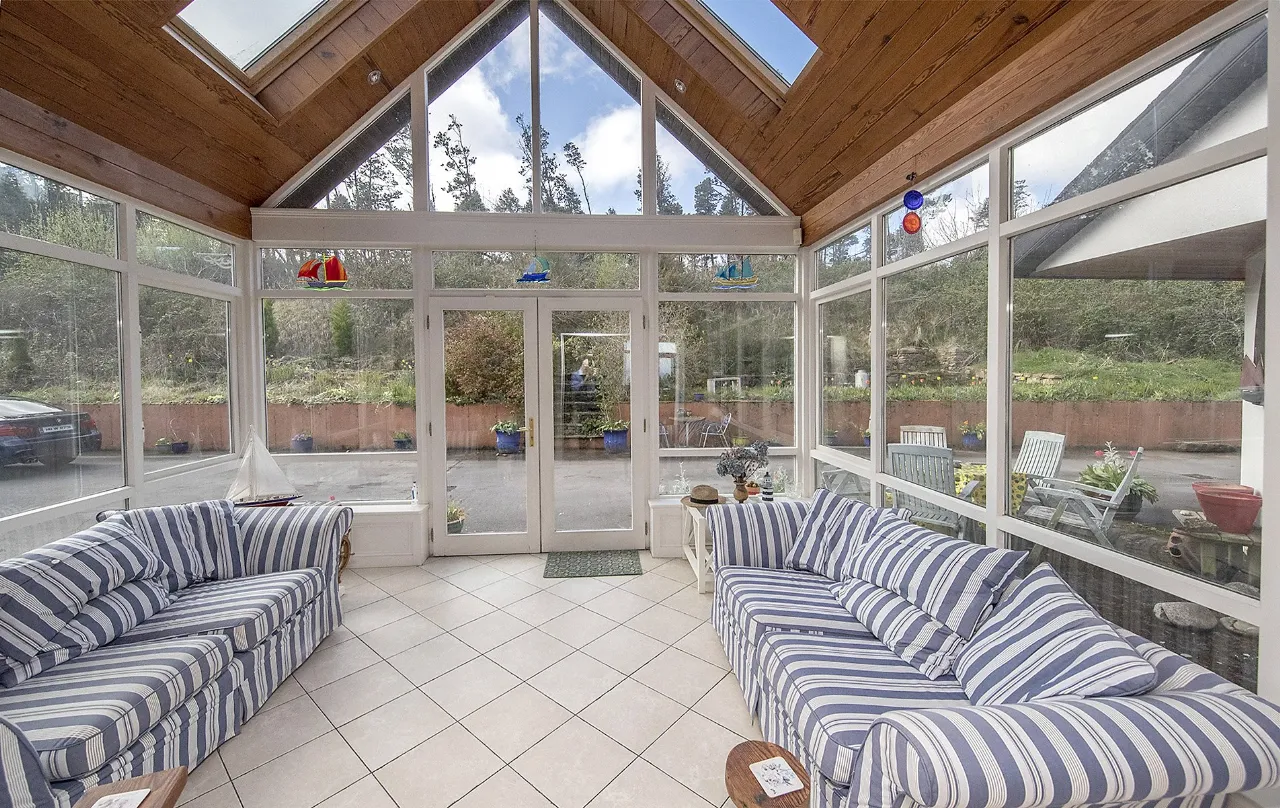 The open plan living and adjoining dining area is the heart of the house and has stunning american oak flooring, feature fireplace and French doors to the decking area to take in the views. The kitchen is very homely with a Stanley Range and opens to the rear sun lounge which is a haven of relaxation with an influx of light from all angles.