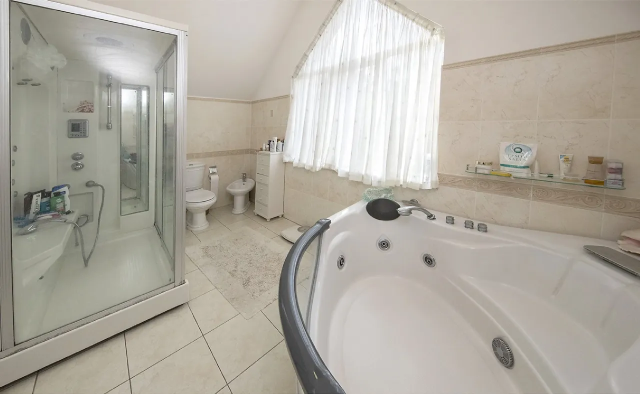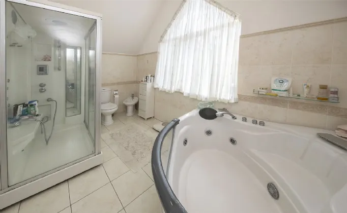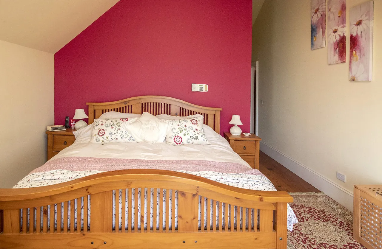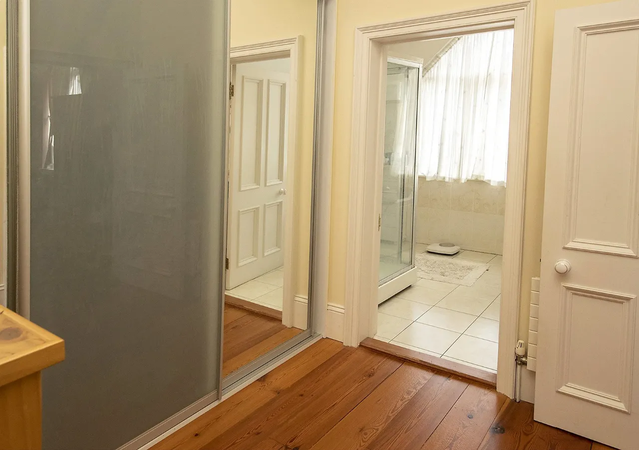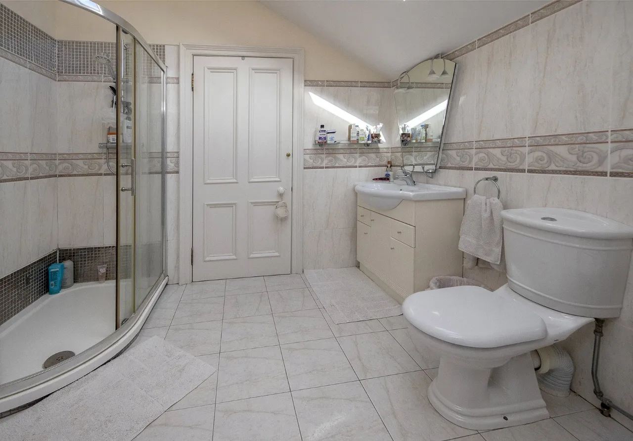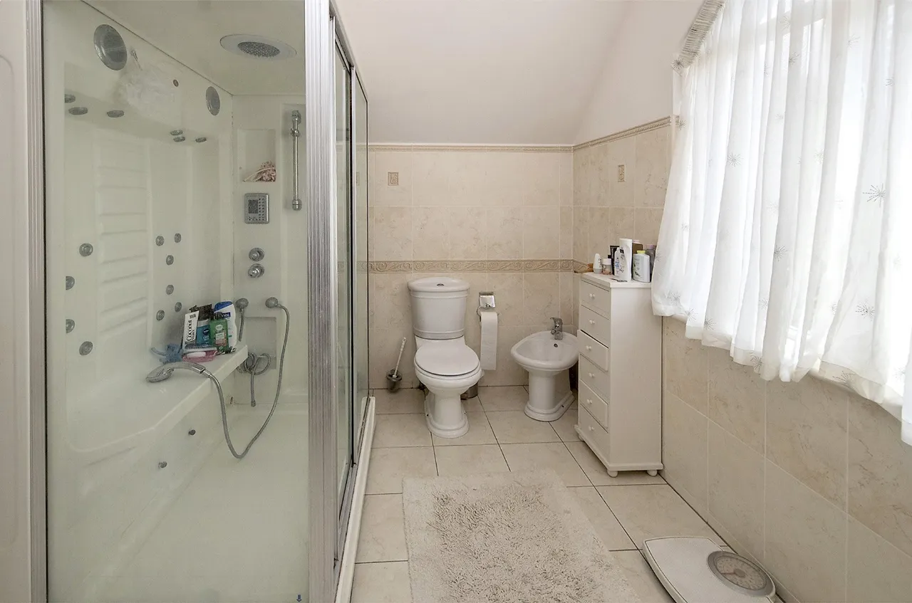Ensuite 2.72m x 2.44m Tiled floor, tiled walls, Velux window to the front, whb, WC, pressure shower, bidet.
