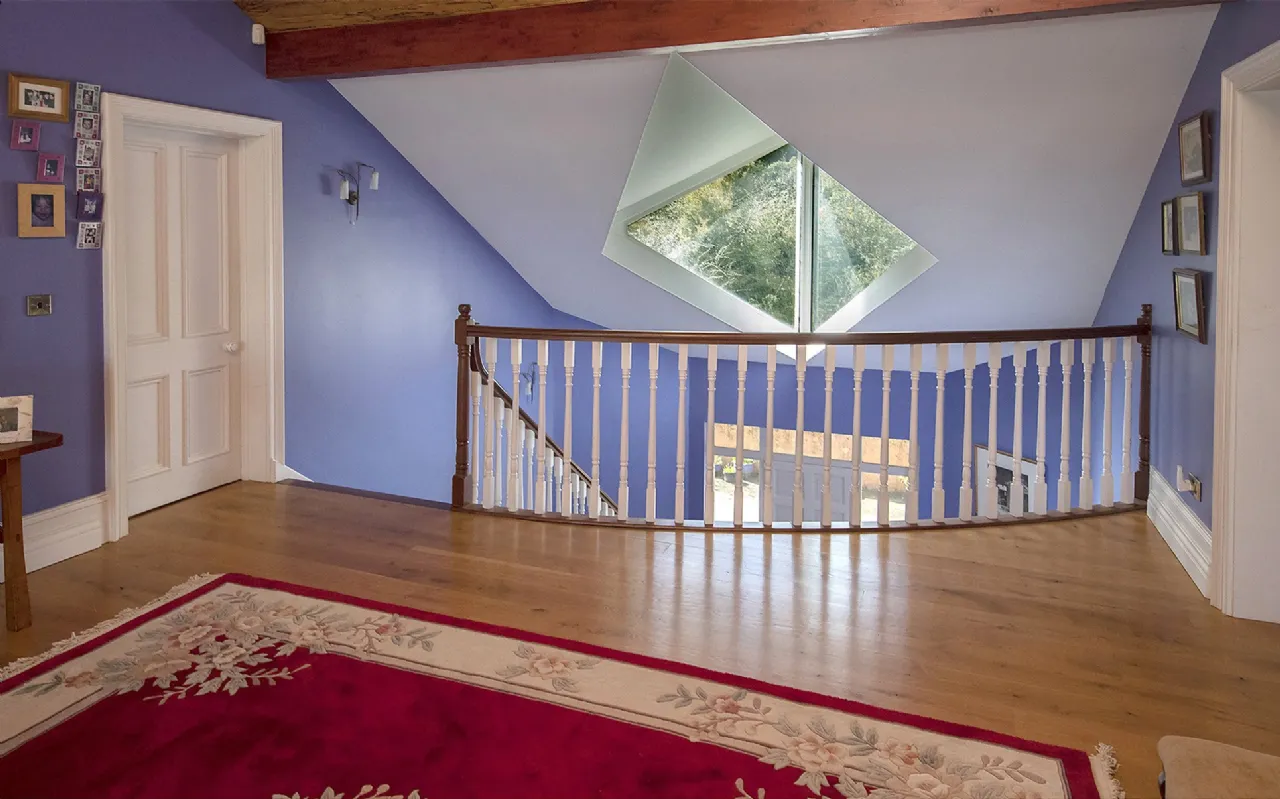 Master Bedroom 5.7m x 3.76m Solid oak floor, painted walls, window to the front and to the side, centre light.