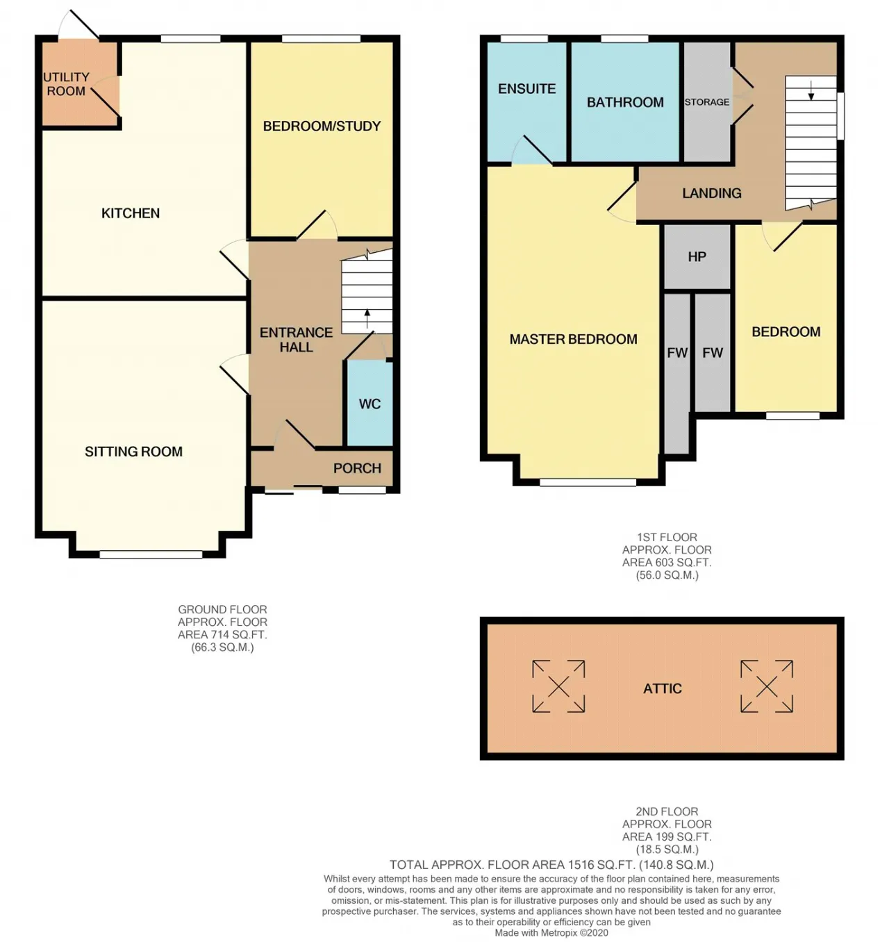 The subject comprises of porch, entrance hall, sitting room, kitchen, utility room, bedroom/study and WC on the ground floor, while the first floor accommodates master bedroom with ensuite, additional bedroom and bathroom. There is ample storage with a significant attic space and additional storage on the landing.
