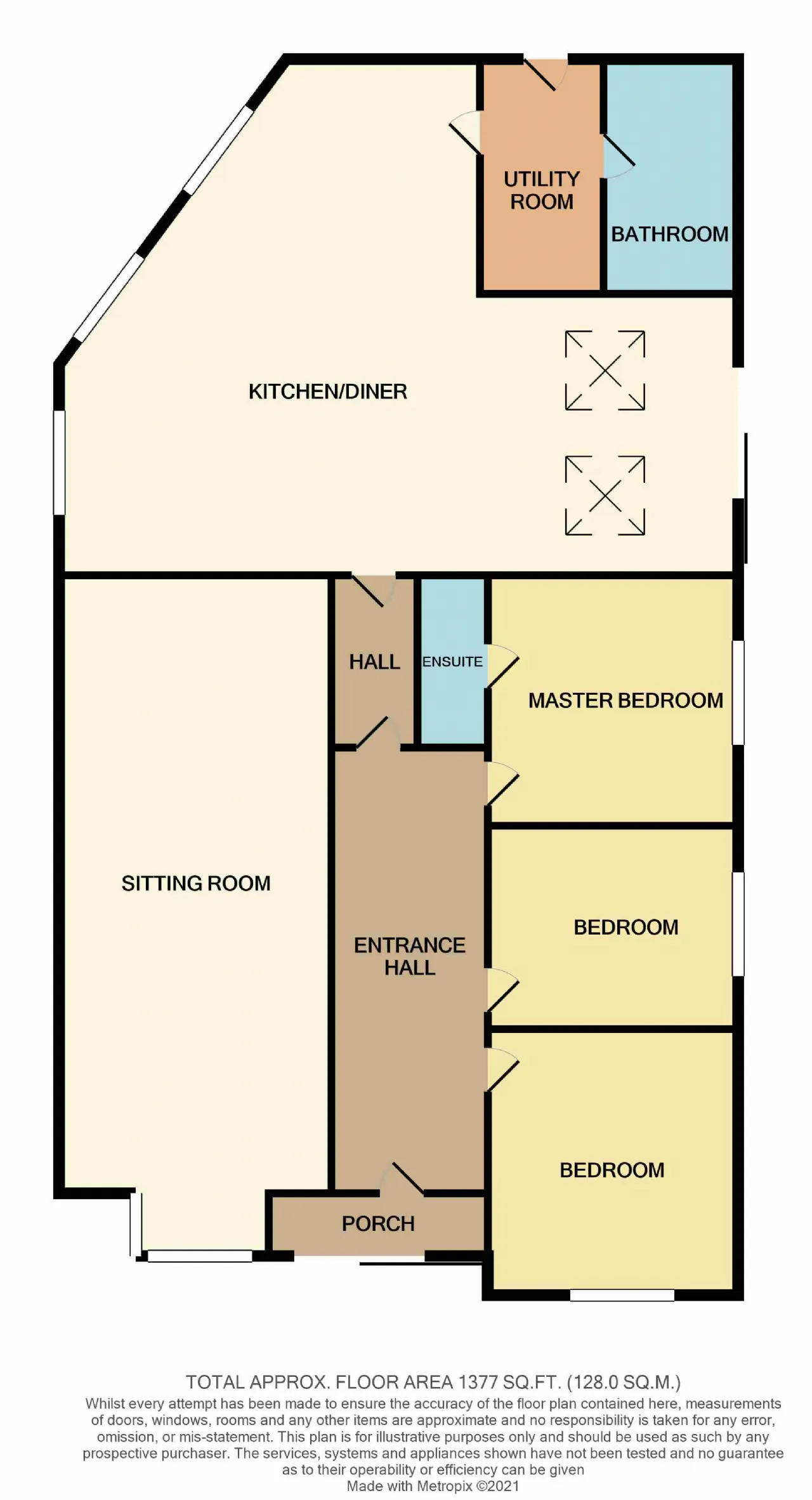 Accommodation, circa. 128 sq. meters, comprises of a porch, entrance hallway, bedroom one with fitted wardrobe, bedroom two with fitted wardrobe, master bedroom with en-suite. Large sitting room, kitchen/dining room/ sun room, utility room and a main bathroom.