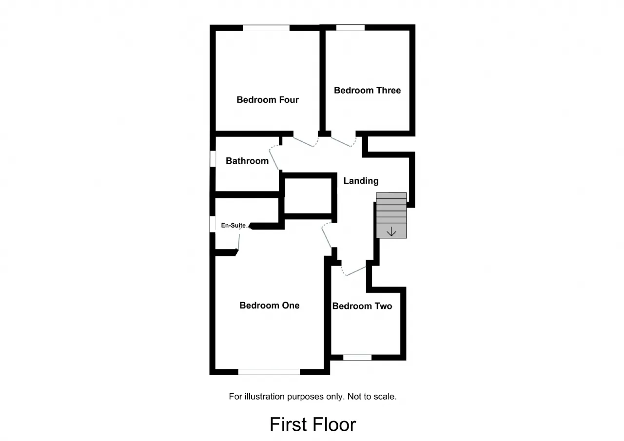 Upstairs, the L-shaped landing with laminate flooring and shelved hot press leads to four well-proportioned bedrooms. Three of the bedrooms are generous doubles with laminate flooring, while the primary bedroom enjoys a front aspect, built-in sliding wardrobes, additional storage shelving, and a private en-suite shower room. A telescopic ladder gives access to the floored attic. The family bathroom is fully tiled and fitted with a bath and power shower, WC, wash hand basin, and extractor fan.