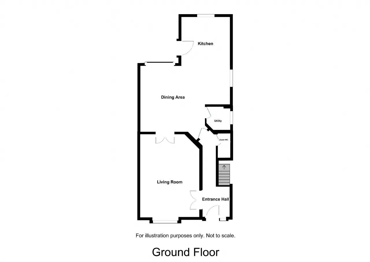 The ground floor accommodation comprises of an entrance hallway with laminate flooring, leading to a spacious living room featuring a solid fuel inset stove, attractive fireplace surround, coving, and double doors opening into the kitchen/dining area. The kitchen is impressively appointed with a newly fitted modern kitchen, tiled flooring and backsplash, integrated appliances, and a bar counter. The dining area enjoys patio door access to the rear garden and connects seamlessly to the living space. A utility room and guest WC complete the ground floor accommodation.