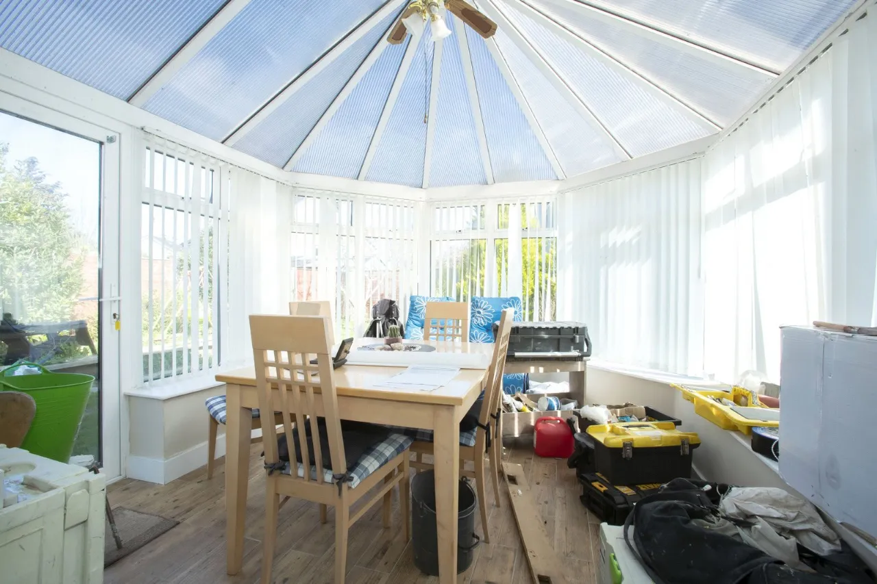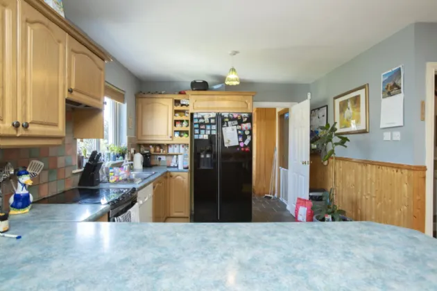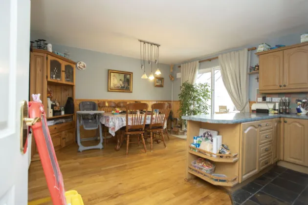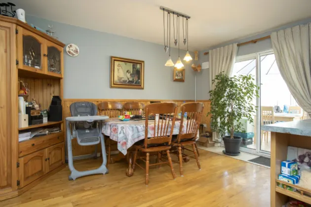 Kitchen/ Dining 6.56m x 4.24m Tiled floors in kitchen, Laminate floor in dining, impressive fully fitted kitchen with tiled background & ample storage, feature lighting, wood panelling, sliding patio door to conservatory.