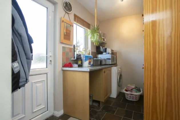 Utility Room 3.42m x 2.18m Tiled floors, backdoor to rear, fitted shelving units, worktop counter, plumbed for washer & drier.