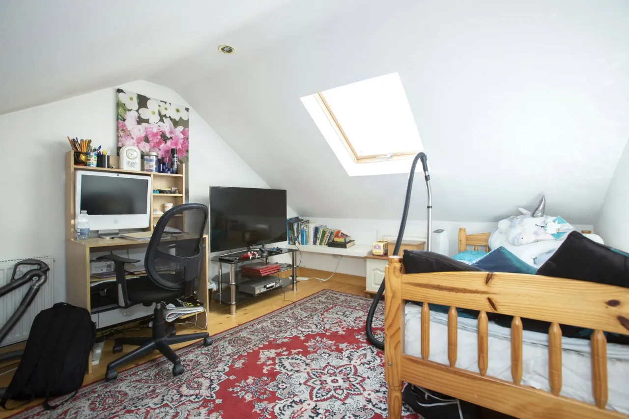 Office 4.00m x 3.09m Solid wood floors, velux window, spotlights.