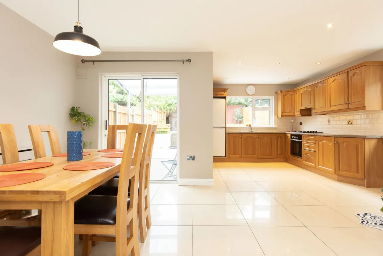 Dining Area 5.89m x 3.56m Tiled floors, patio doors to rear patio
