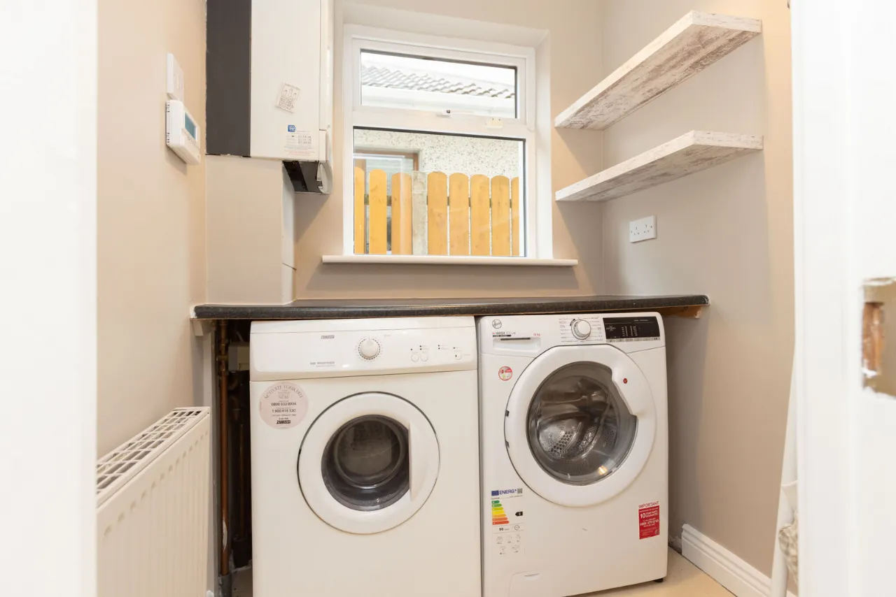 Utility Room 1.43m x 1.52m Plumbed for washer/dryer, tiled floor, Gas boiler