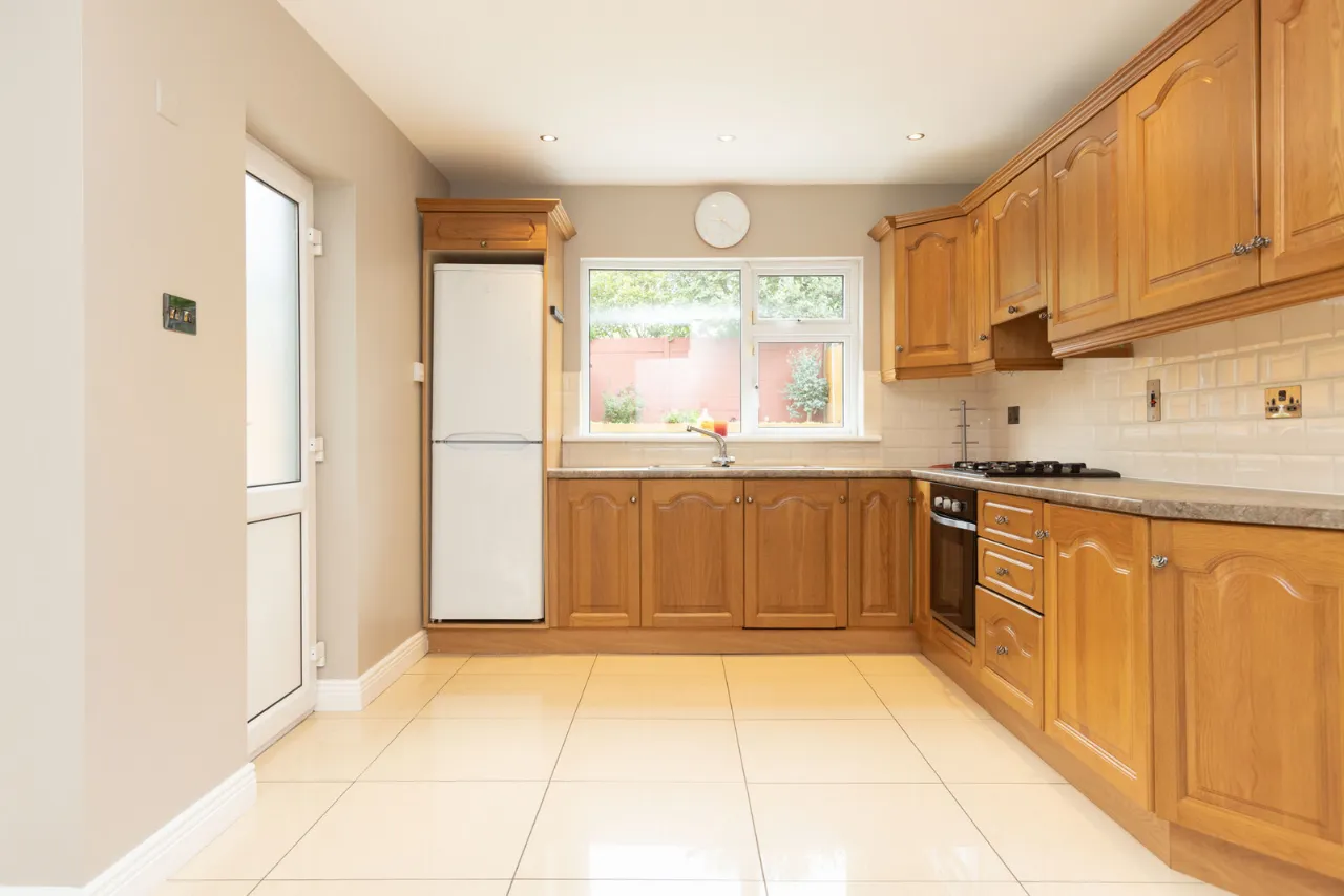 Kitchen 2.44m x 2.97m Tiled floors, fully fitted kitchen with integrated appliances, door to rear garden