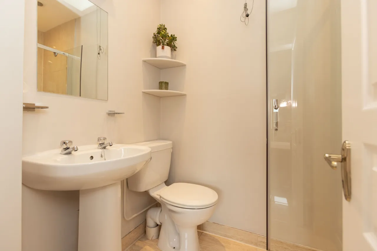 En-Suite 1.49m x 2.22m Laminate floors, shower cubicle