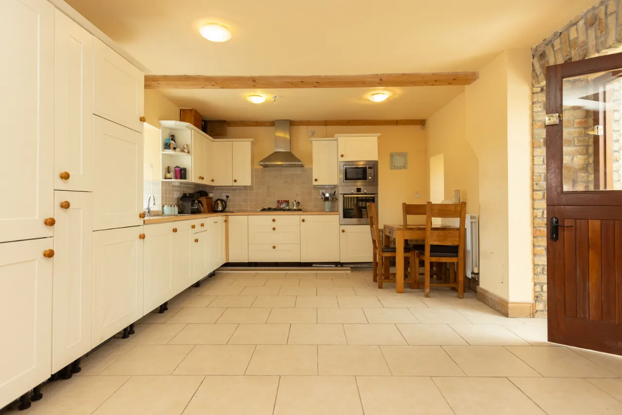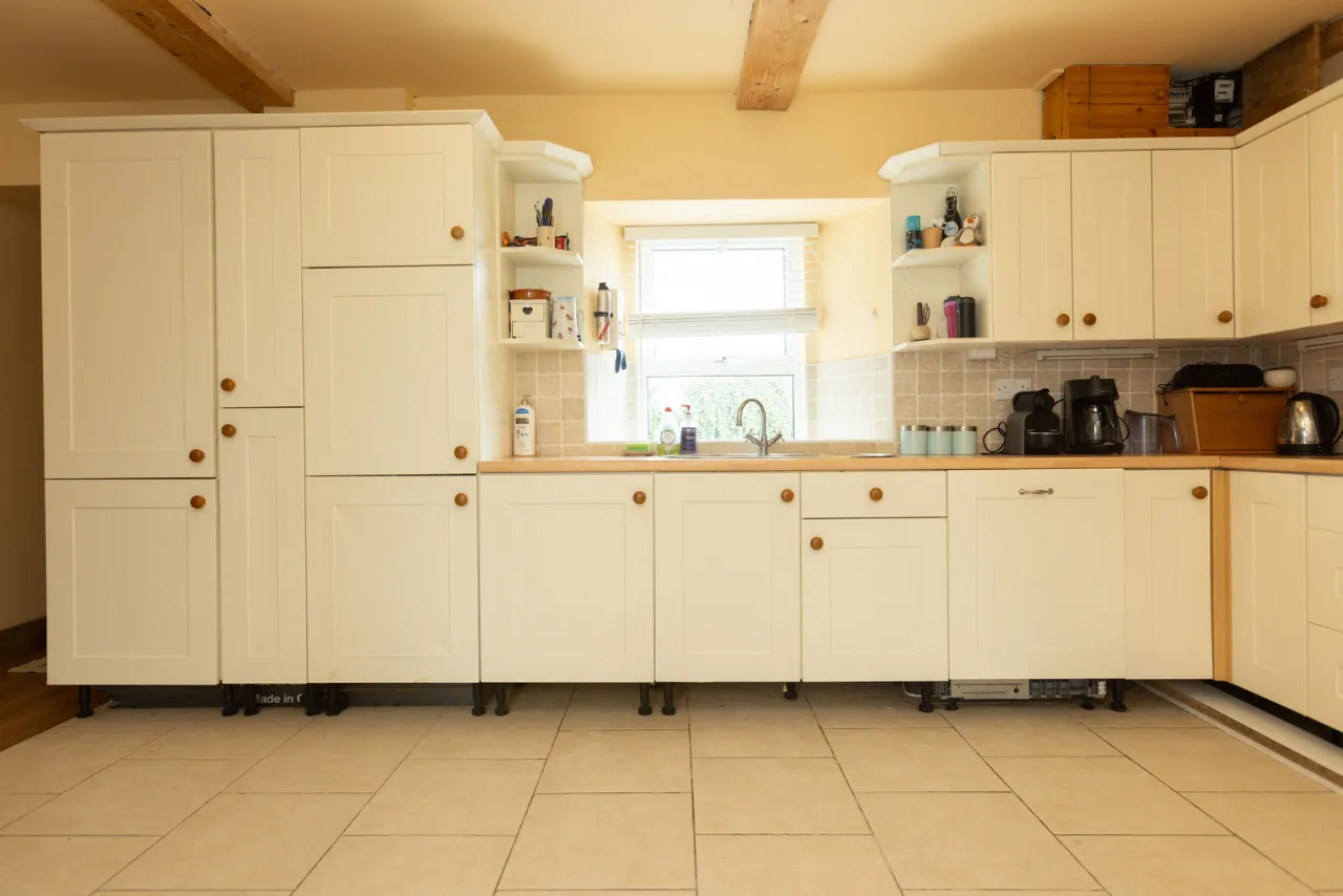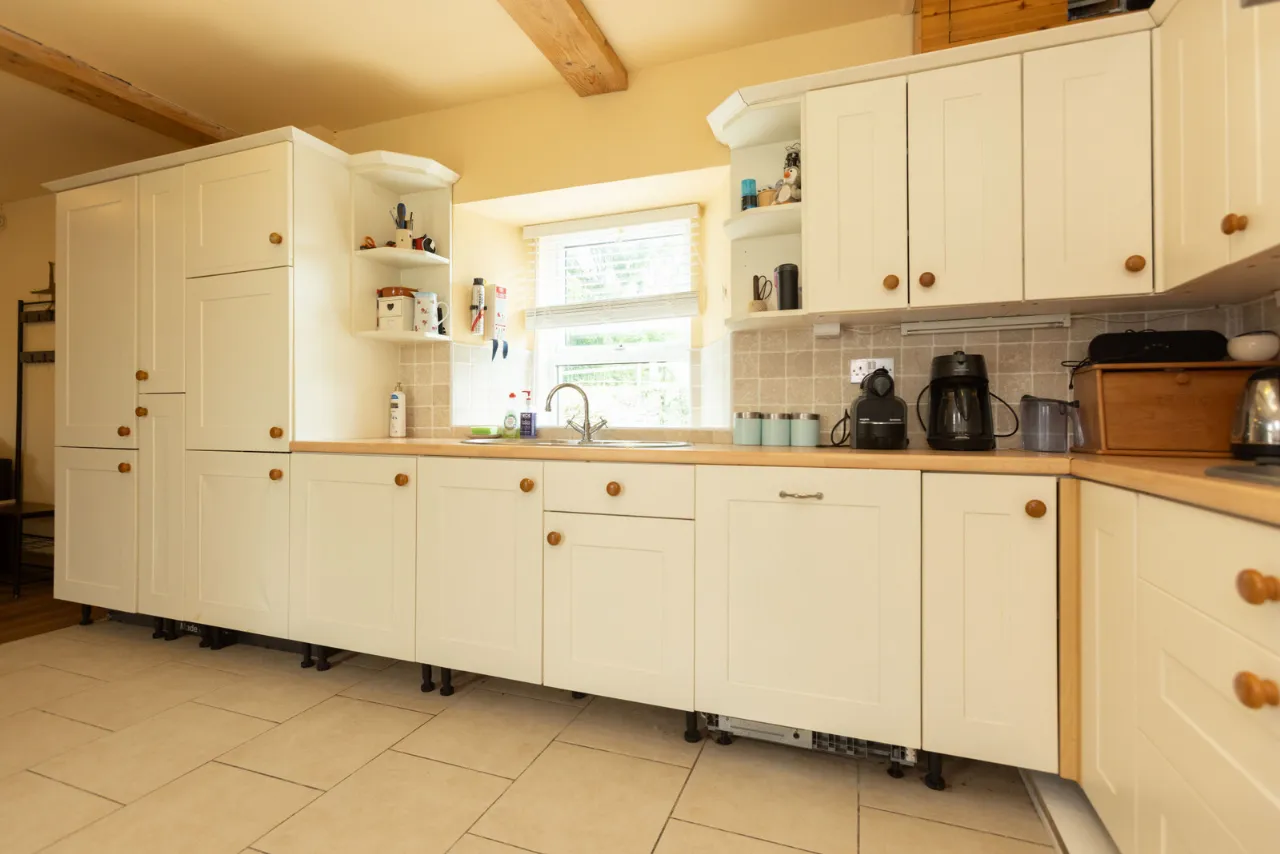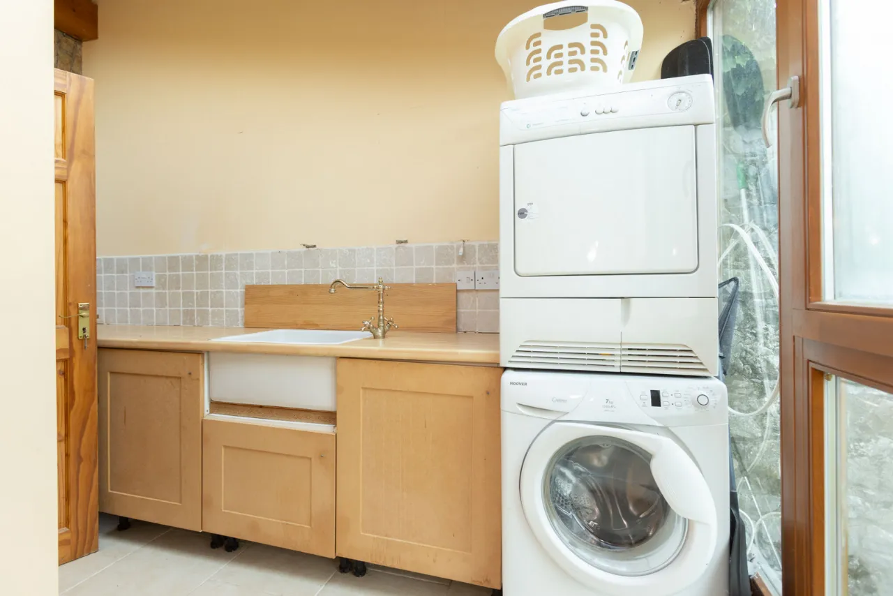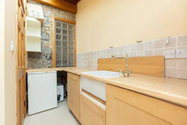 Utility Room 2.51m x 3.38m Tiled floor, worktop with belfast sink, plumbed for washer/dryer.