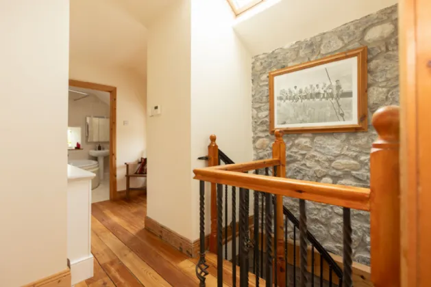 Landing 3.88m x 1.78m Semi solid timber floor, hotpress, attic access, skylight.