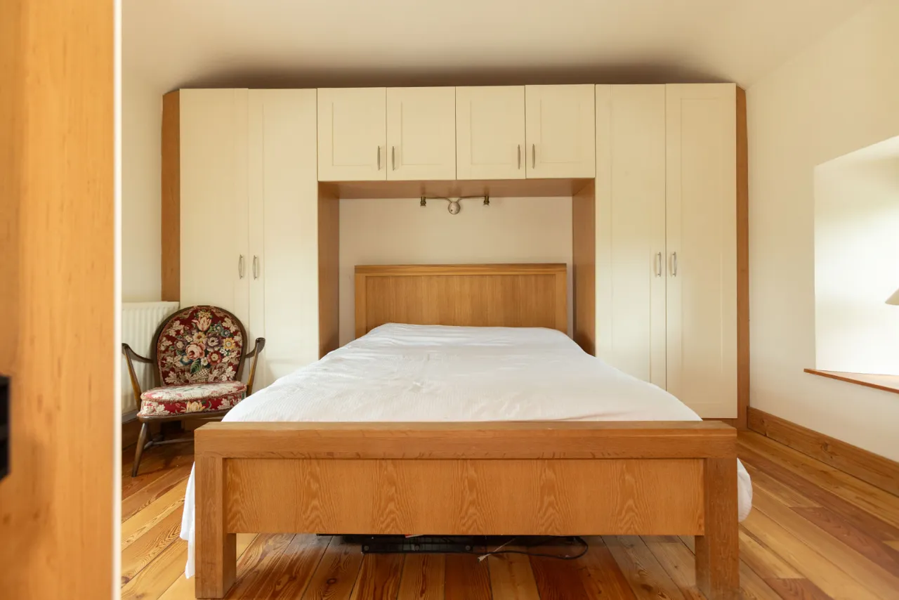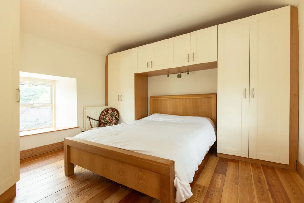 Bedroom One 3.35m x 3.84m Semi solid timber floor, fitted wardrobes, spotlights.