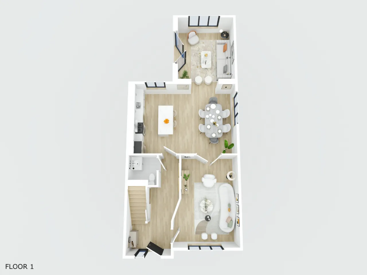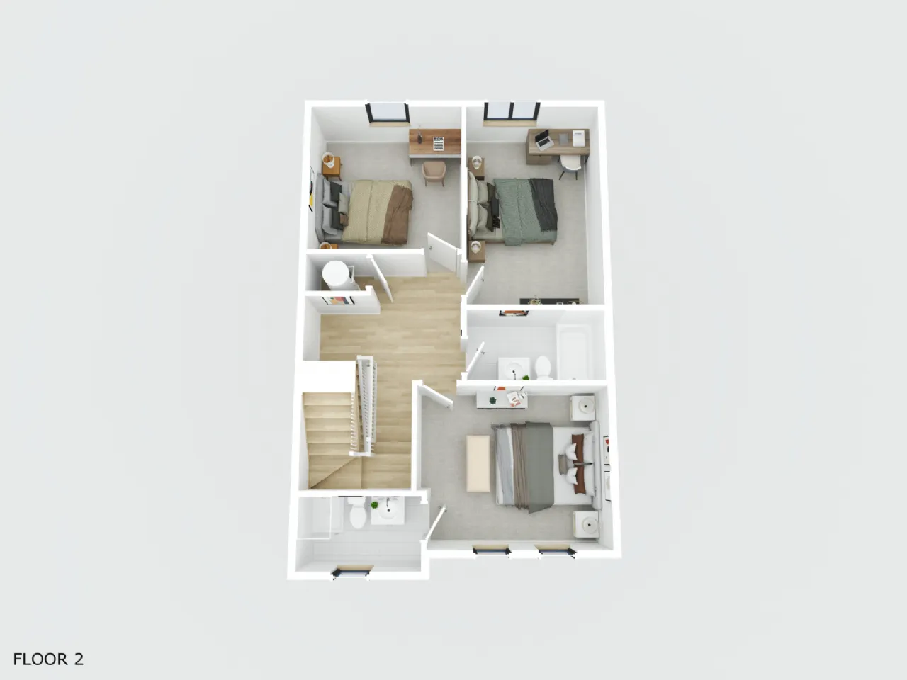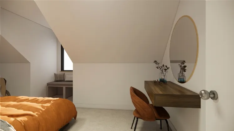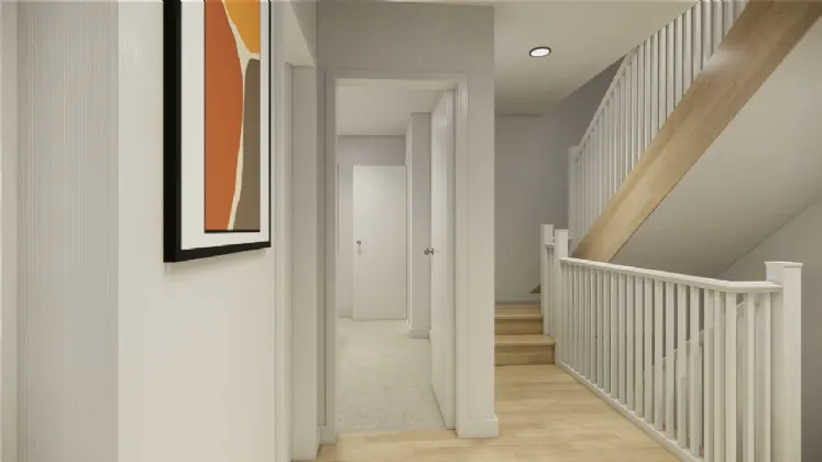 Type D homes are 169 sqm, 4/5 bedroom detached homes with two living rooms and kitchen/dining room along with wheelchair accessible WC on the ground floor,, 3 bedrooms (one with en-suite) and family bathroom on the first floor and two further bedrooms (or bedroom and study) and shower room on the second floor.