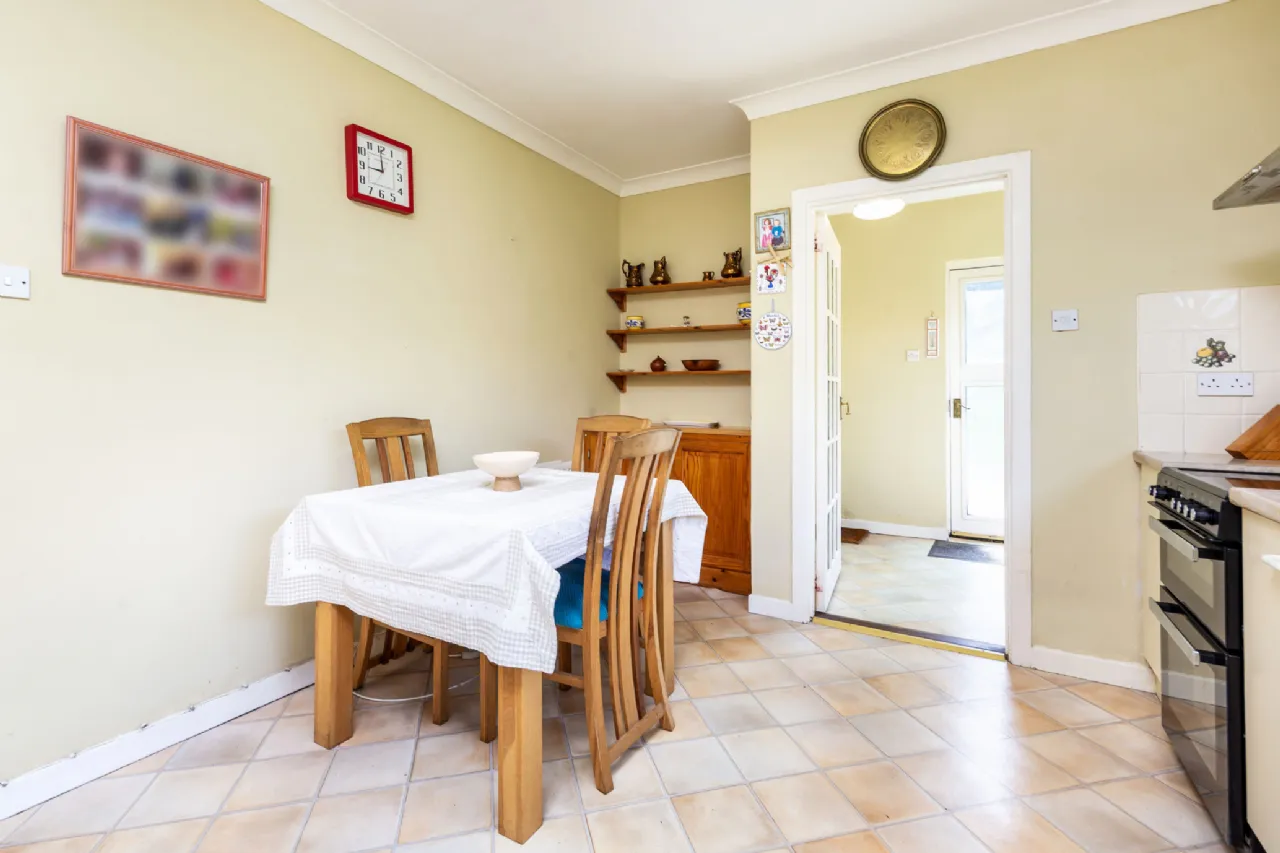On entering this generous home there is a large living room with stove and large front-facing window. Behind that room is the dining room which originally had an open fire (now closed up) which could be reinstated. It also has a hatch into the kitchen. The kitchen has solid timber waist and eye level units and there is also a handy utility area to the rear.
