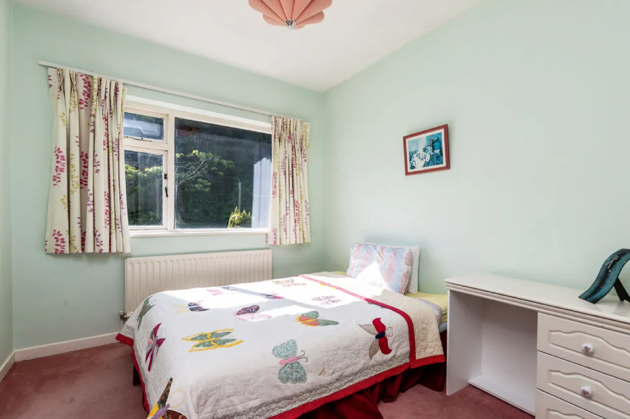 Bedroom 4 3m x 2.7m with rear facing window and carpet flooring (curtains not included)