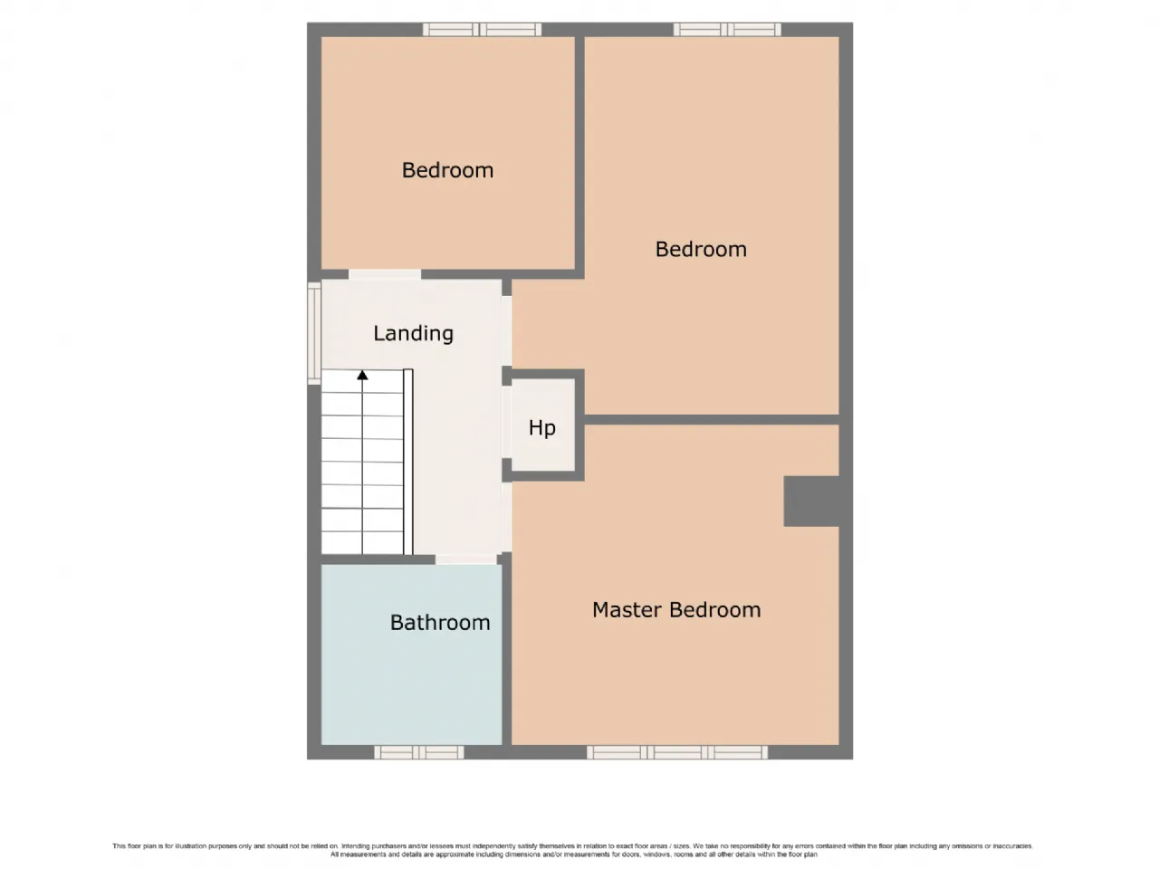 Landing 3.4m x 2m with carpet flooring, Hot Press 1m x 0.6m, attic hatch and side window