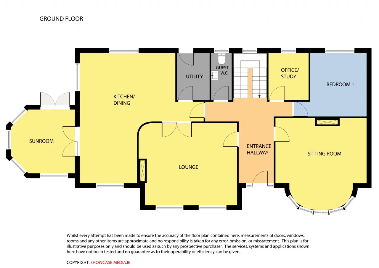 Finished to a high standard and in true walk-in condition, accommodation briefly comprises of entrance hallway, sitting room, lounge, kitchen/dining, sunroom, utility, guest WC, office/study and the first of five bedrooms all on the ground floor while upstairs on the first floor is the family bathroom and a further four spacious bedrooms, two of which feature modern en-suite bathrooms—ideal for growing families or guests, . The interior is bright and inviting, with a well-balanced layout that includes ample living and entertaining space.