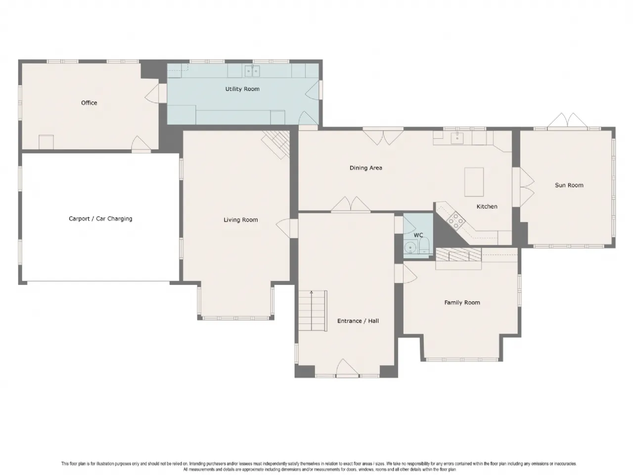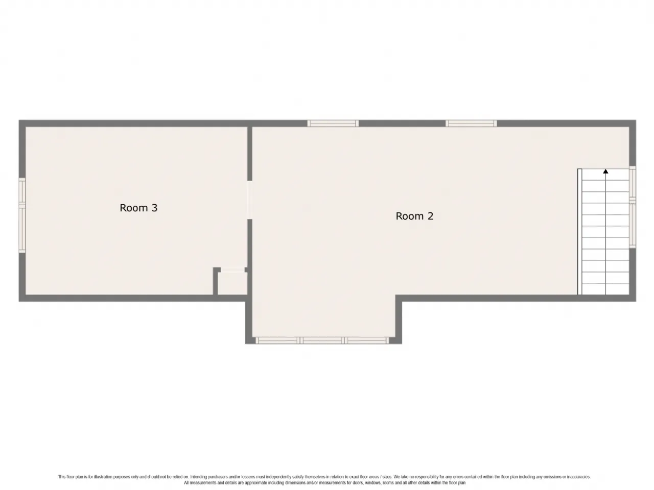 Room 1 7.95m x 4m Open space with feature panoramic window.