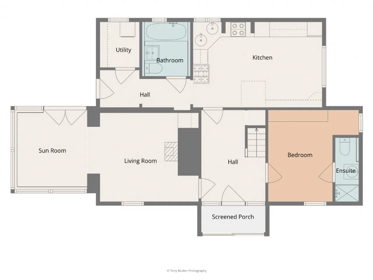 The original residence comprises living room, sunroom, kitchen /dining, utility, ensuite bedroom (currently used as an office) and bathroom on the ground floor with a further two bedrooms and shower room located on the first floor.