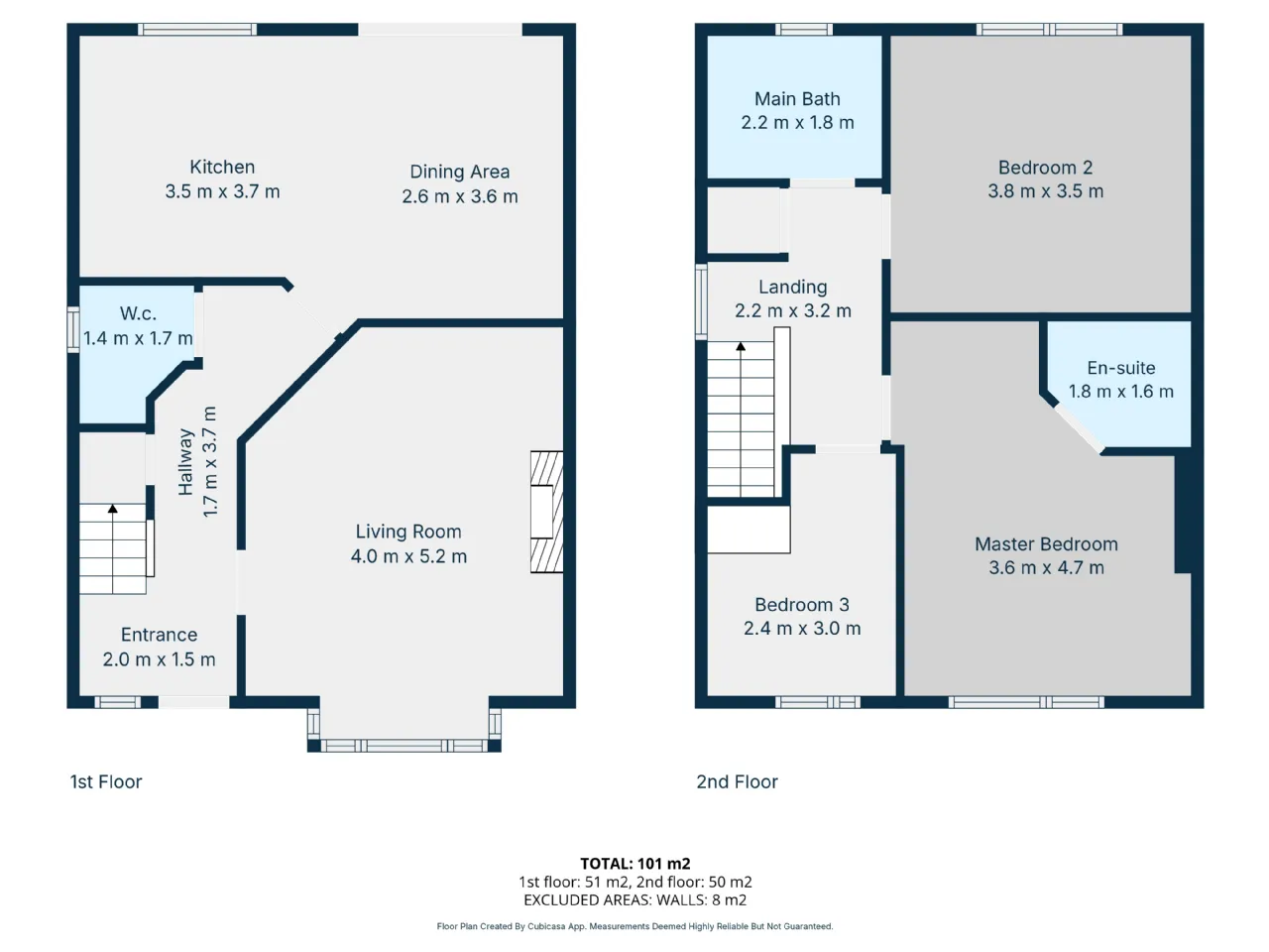 Master Bedroom 3.6m x 4.7m at widest point.
