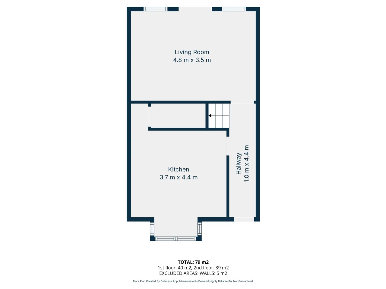 Entrance hallway 4.40m x 1.0m semi-solid wood flooring.