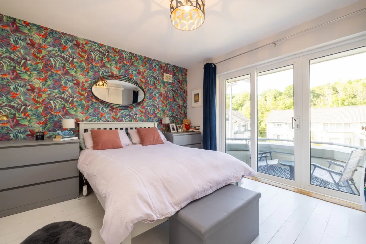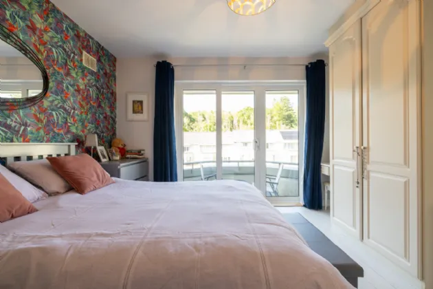 Up the stairs, the bedroom accommodation consists of three spacious bedrooms with the Master Bedroom enjoying its own ensuite and large double doors leading out on to the balcony. This light filled room features built in wardrobes (as do the other two) and dressing table.