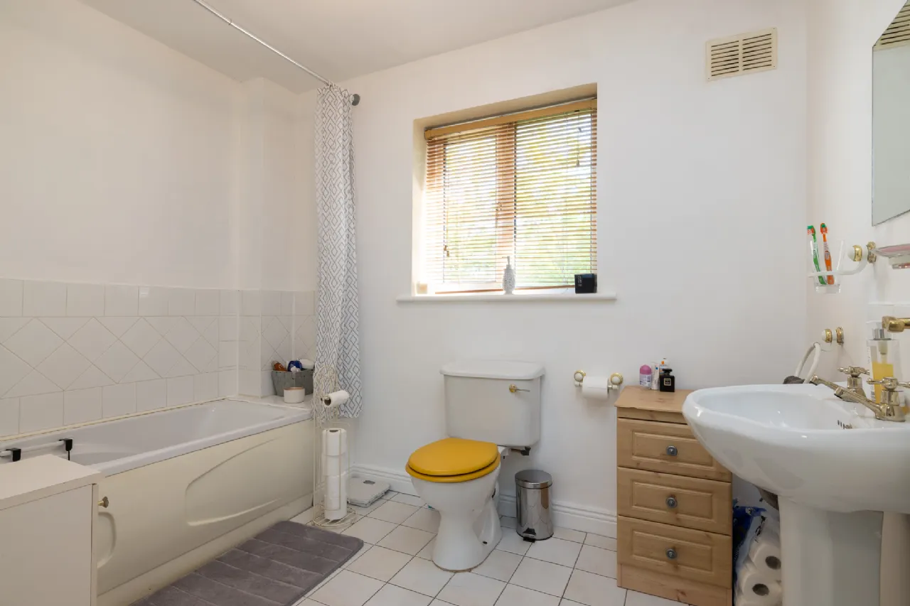 Bathroom 2.86m x 2.04m tiled flooring and bath, WC and wash hand basin.