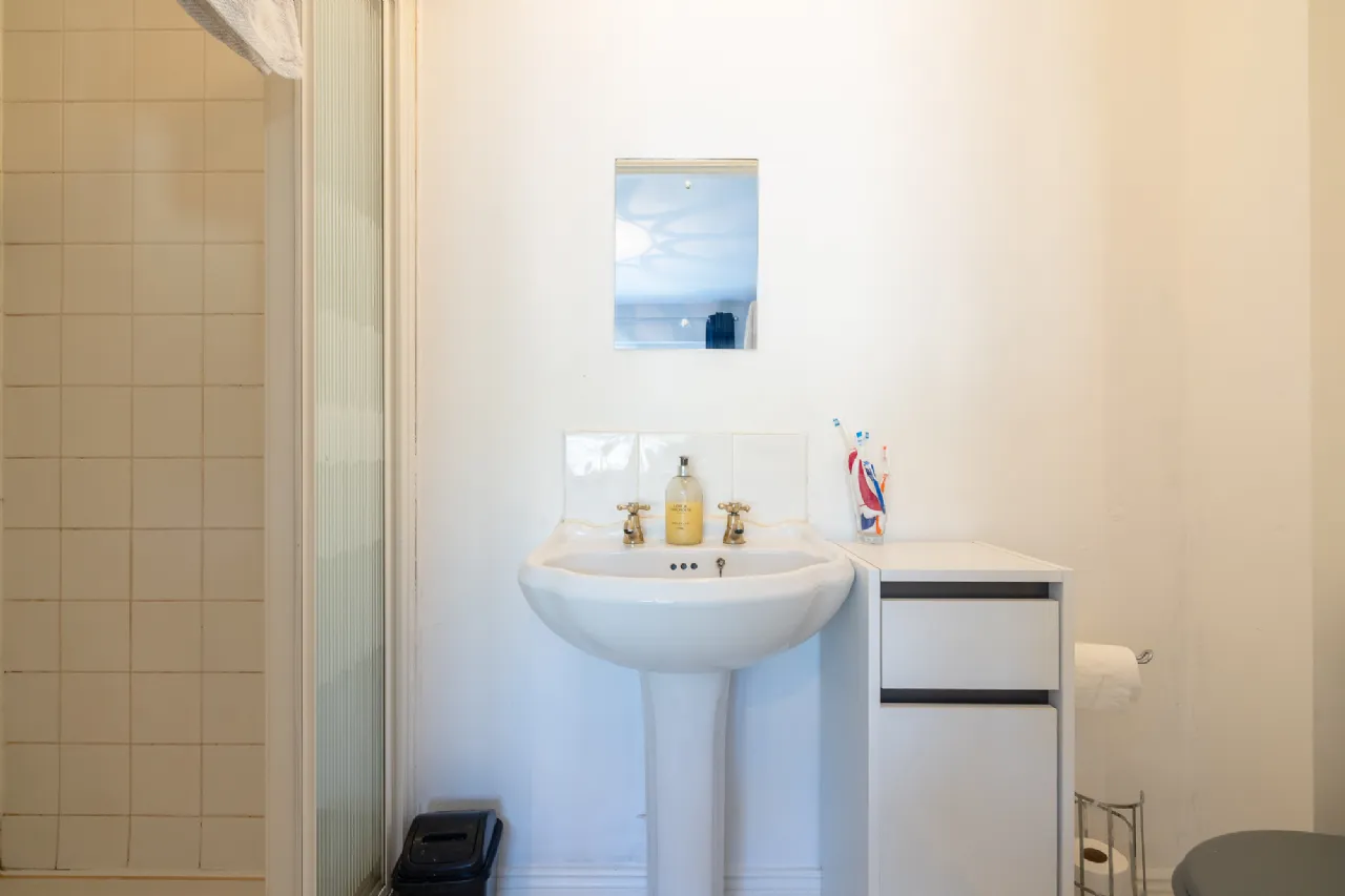 Ensuite 0.90m x 2.97m tiled floor and shower, WC and wash hand basin.