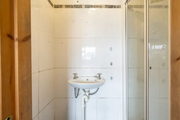 Ensuite 1.00m x 1.90m, With tile flooring and walls, wash hand basin & shower.