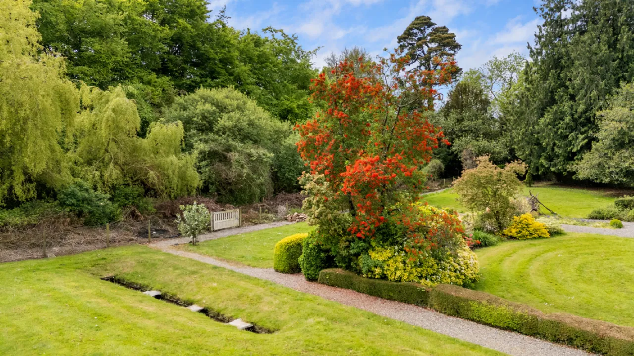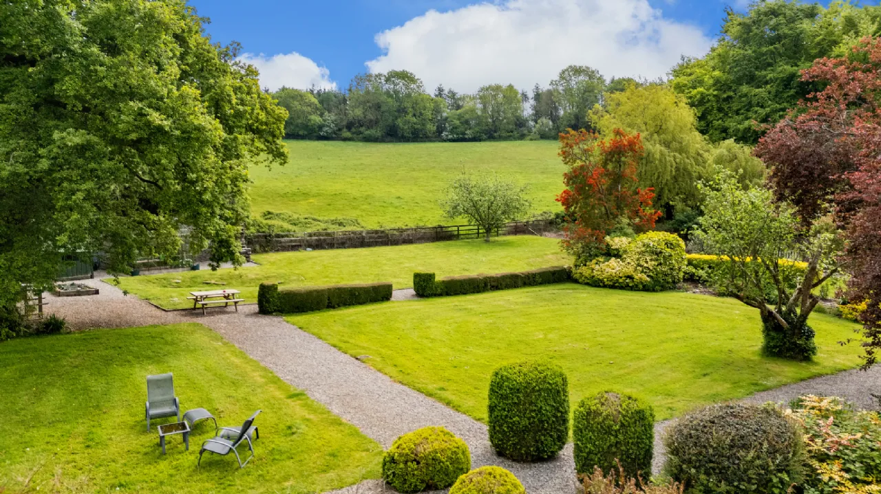Ballinapark House enjoys a secluded and private setting, surrounded by picturesque parkland and offering scenic views over the Blackstairs Mountains. A long driveway, secured by