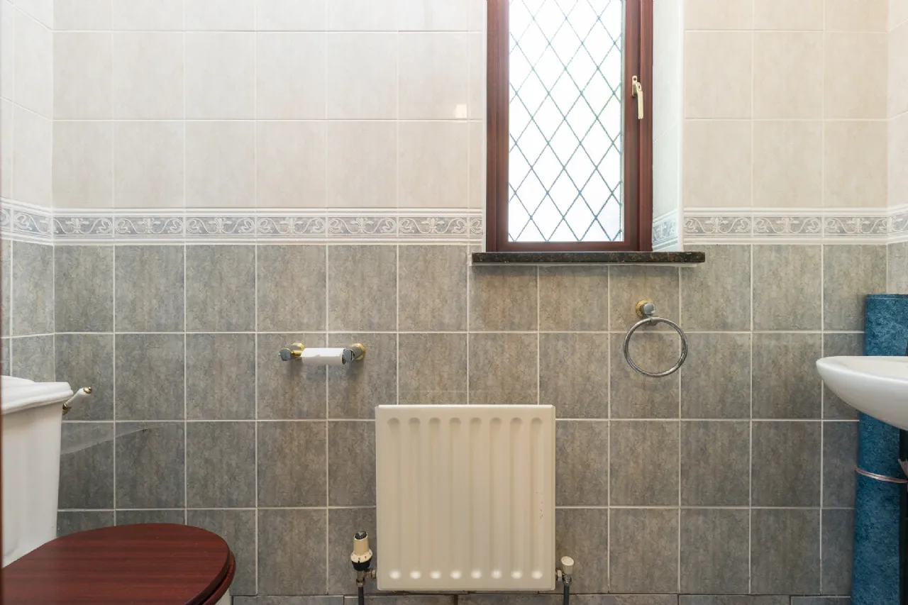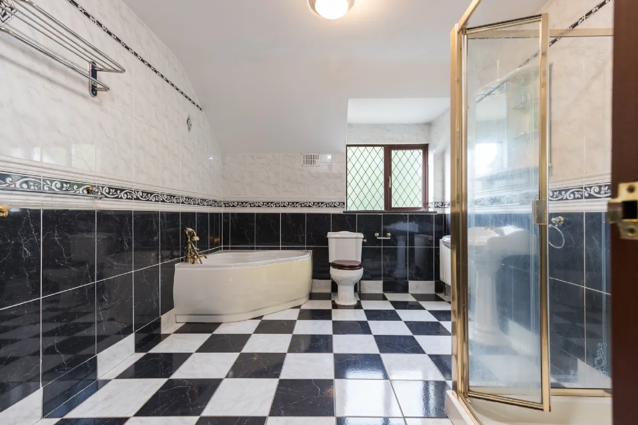 Bathroom 3.55m x 2.89m tile flooring and walls, bath, shower, WC, wash hand basin