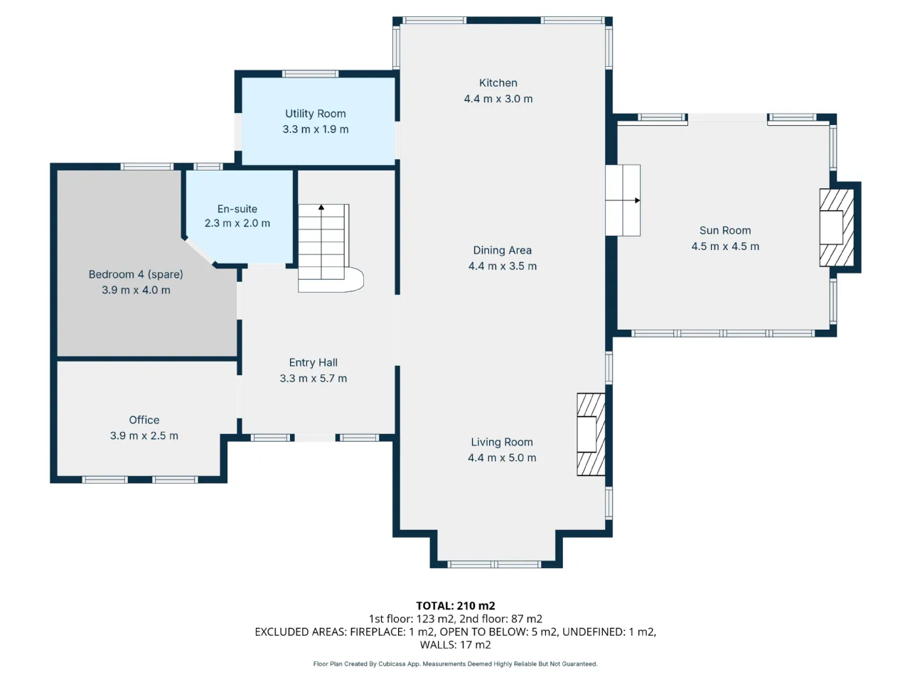 Sun room 4.50m x 4.50m Hgh ceiling.