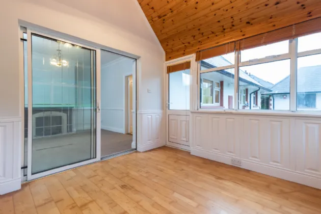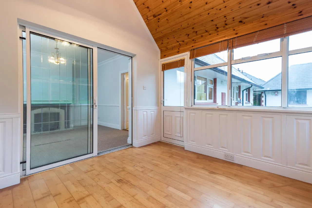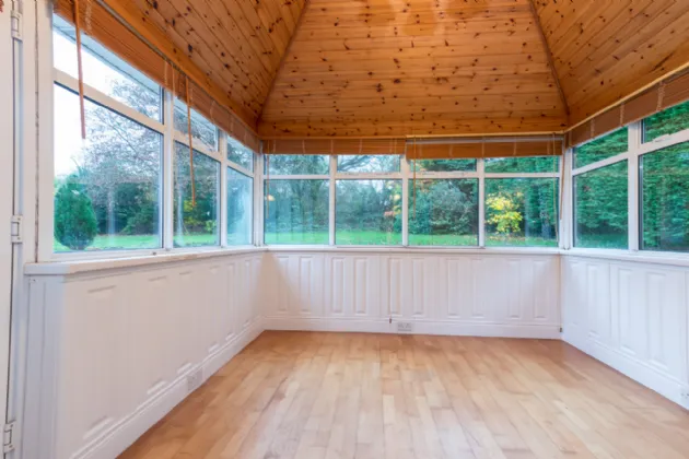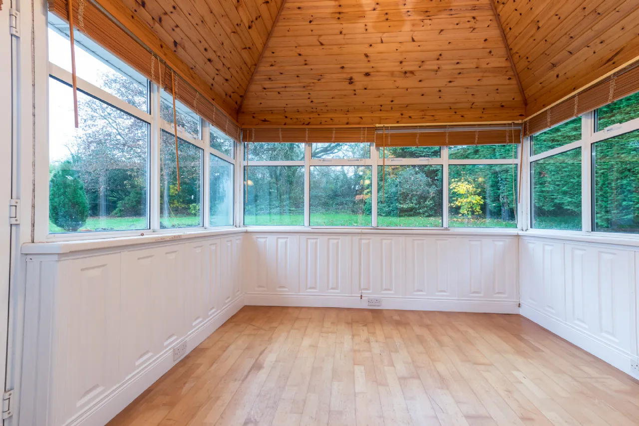 Sunroom 3.01 x 3.01m solid wood flooring, vaulted wooden ceiling