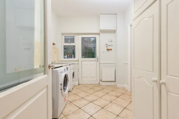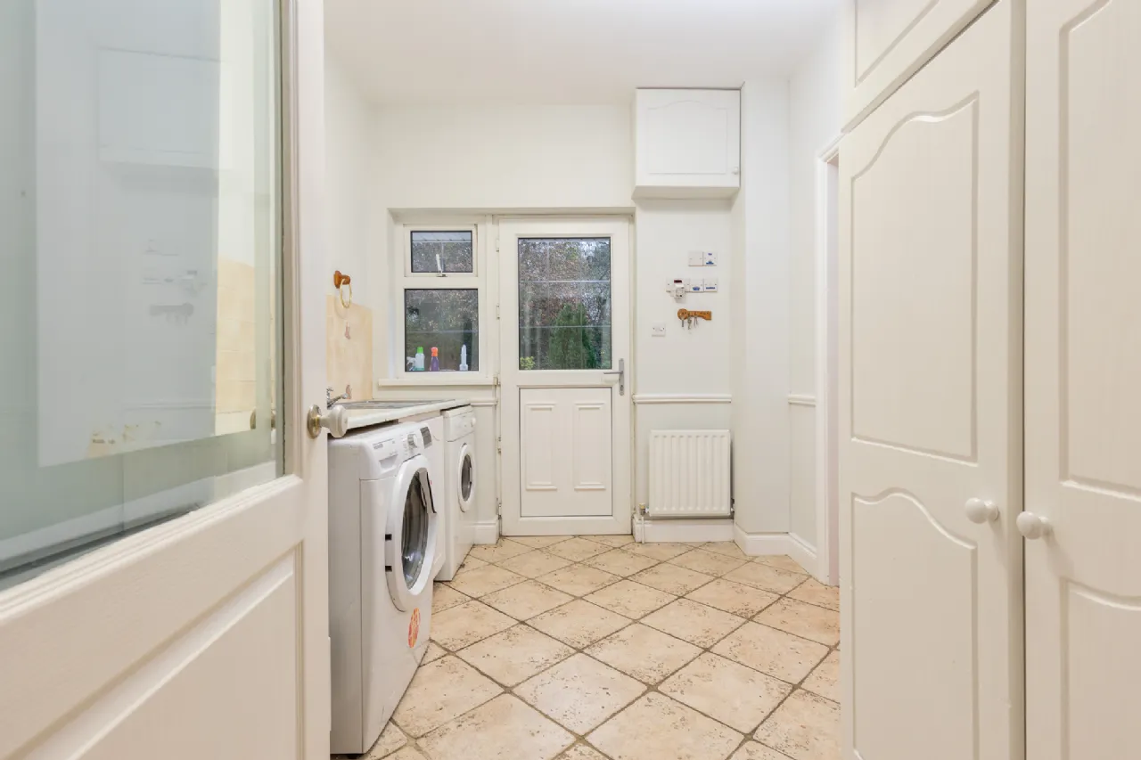 Utility Room 3.00 x 2.42m tiled flooring, built-in storage units, washer and dryer.