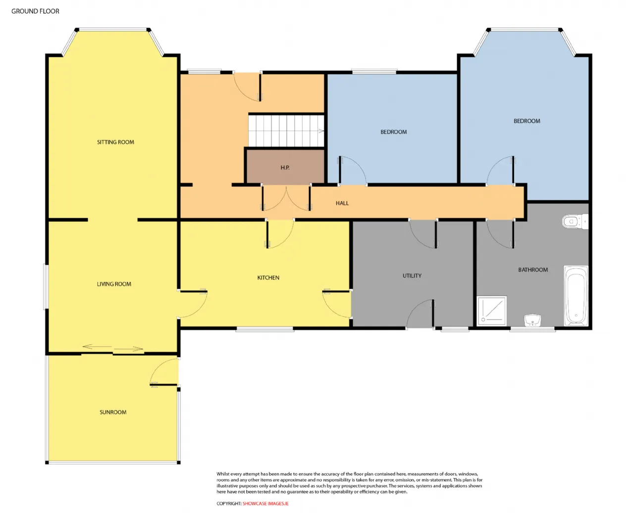 There is an abundance of living accommodation with a large sitting room, a living room, a kitchen/ dining, a sunroom, a utility, guest WC, and the two of four bedrooms on the ground floor. On the first floor there are two well proportioned bedrooms and family bathroom.