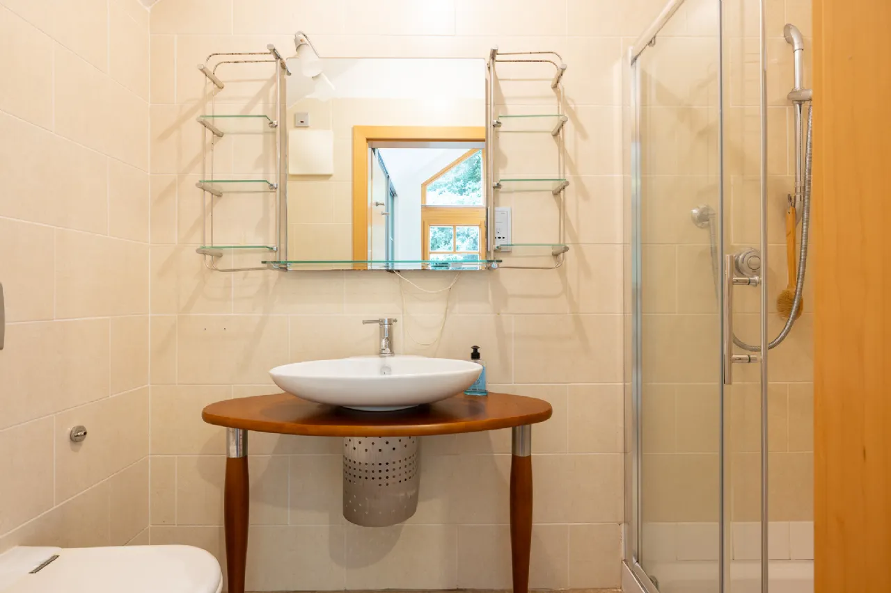 Ensuite 1.22m x 2.79m at widest point tile flooring and walls, shower, WC, wash hand basin
