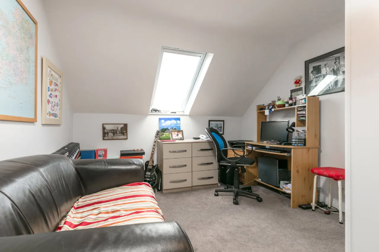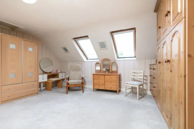 Bedroom 3 5.70m x 4.66m at widest point, carpet flooring, inbuilt wardrobes, Velux windows.