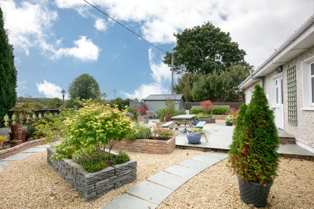 Outside to the front is a large lawn area with mature trees and shrubs and tarmac driveway with ample parking leading to the front of the home and around the side of the dwelling. To the rear is a self-contained granny flat with kitchen/ dining/ living area, a bathroom and one bedroom.