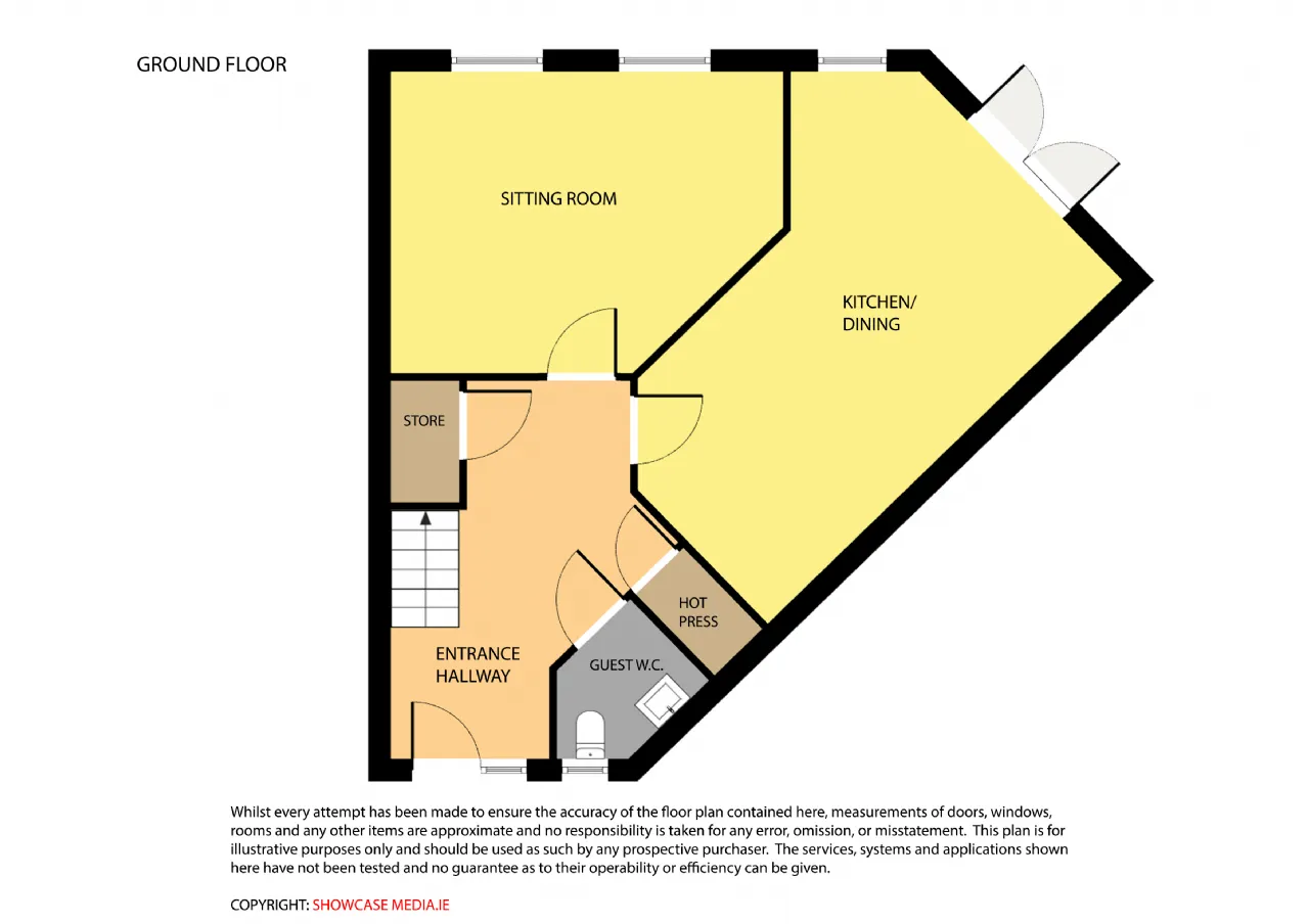 Guest WC 2.14m x 2.00m at widest point, tiled flooring, WC and wash hand basin.